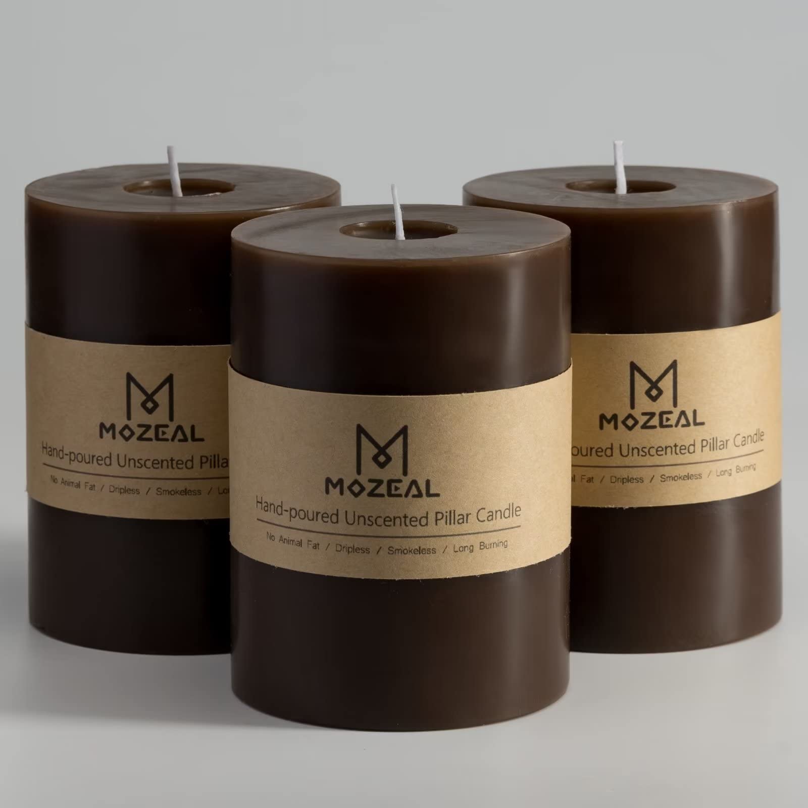 We linked the product for easy checkout: MOZEAL 3" x 4" Hand-Poured Unscented Candle, Dripless Pillar Candle Set of 3